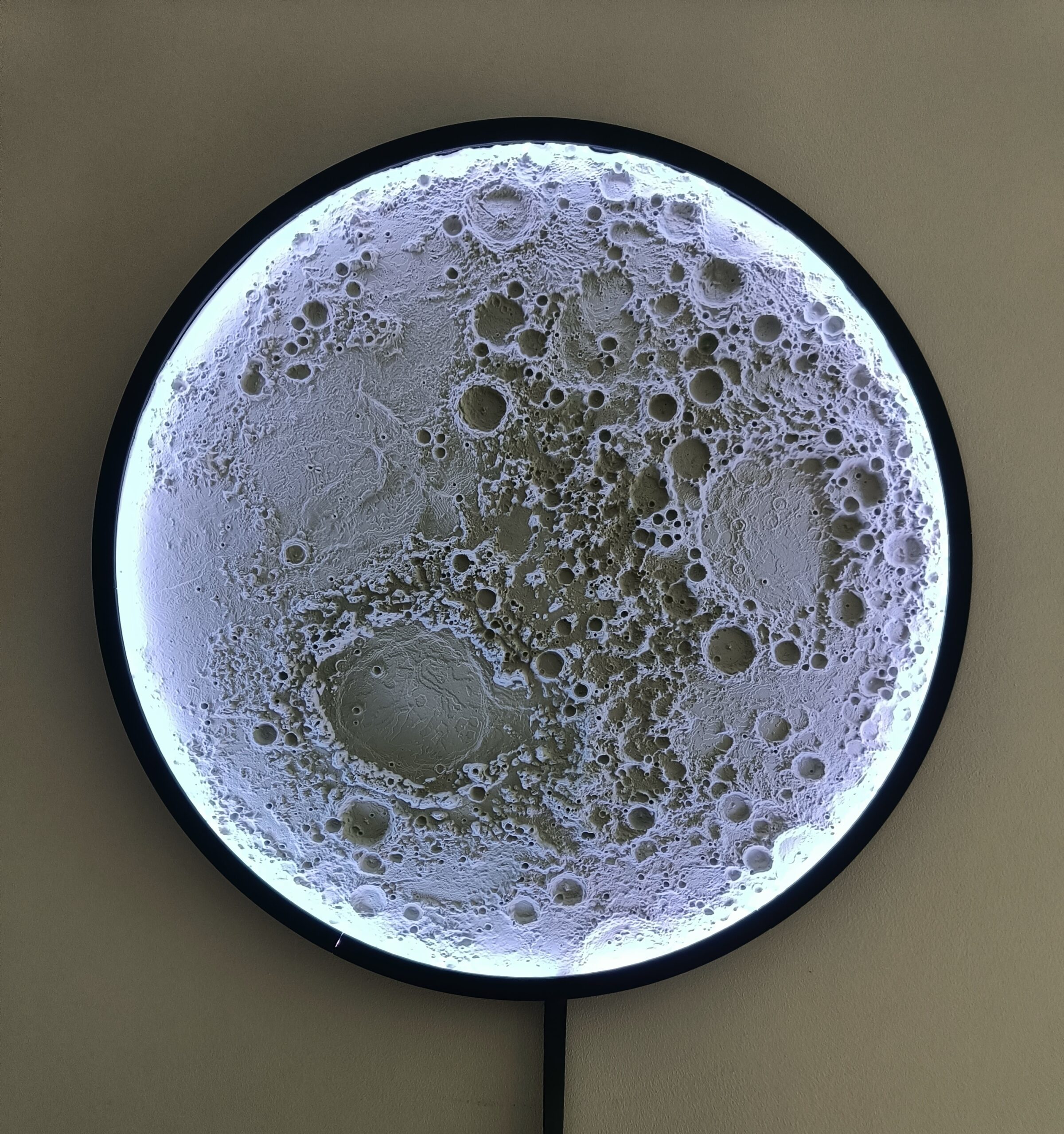 Este o piesă de artă tridimensională realizată dintr-un material translucid, care devine vizibilă doar atunci când este iluminată din spate. Imaginea este creată prin variații de grosime a materialului: zonele mai subțiri lasă să treacă mai multă lumină (părțile luminoase), în timp ce zonele mai groase blochează lumina, apărând mai întunecate.