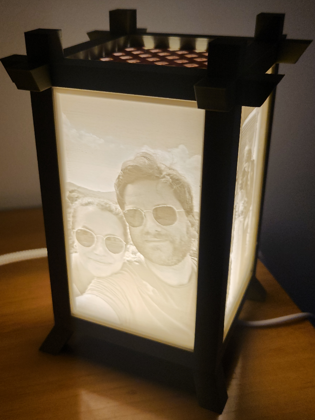 Efect vizual: Fără o sursă de lumină în spate, o lithophane arată ca o suprafață albă, texturată și denivelată. Odată iluminată, detaliile fotografice apar cu o profunzime și un contrast deosebit, asemănător unui negativ fotografic.
